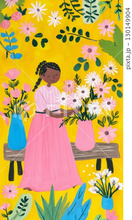 ペーパークラフト風の立体感がある華やかな女性像 アイコンなど、1:1サイズ