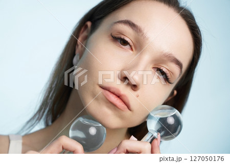 スキンケア、美肌の女性二人 笑顔で寄り添うナチュラルポートレート
