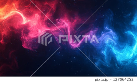 Abstract Cosmic Nebula with Swirling Red and Blue Gaseous Clouds