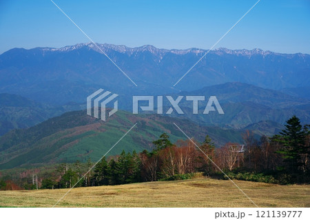 春のキャンプONTAKE 雲の上エリアから残雪の中央アルプスを望む