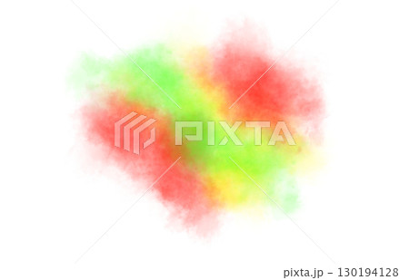 Colorful smoke cloud with vibrant red green and yellow gradient on transparent background abstract paint explosion