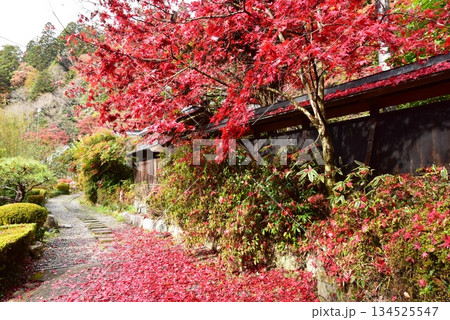 栃木県 雲厳寺境内の色鮮やかな紅葉落ち葉