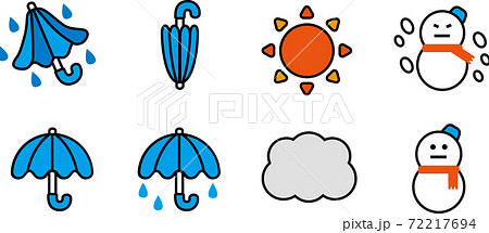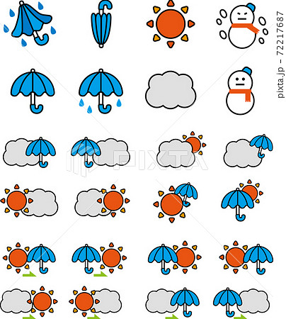 線細めのお天気マークまとめセット(塗りなし白黒)