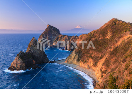 (静岡県)西伊豆・千貫門と富士山 夕景