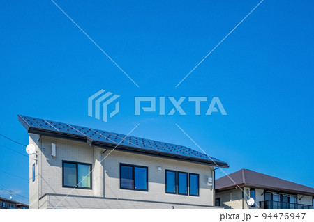晴天の直射日光を浴びる太陽光パネル発電システム屋根裏ECOエネルギー電力自由化イメージ