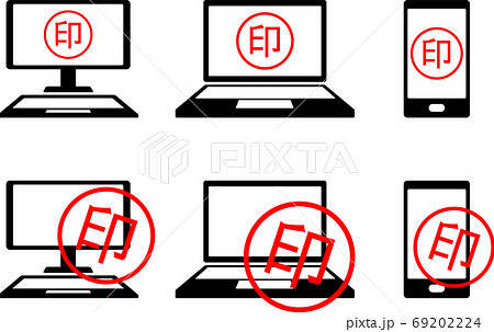 ノートパソコンの電子署名アイコン 赤い印バージョン