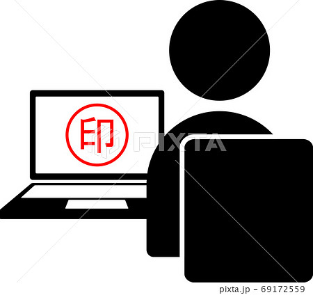 パソコンでの電子署名を象徴するアイコン 赤い印バージョン