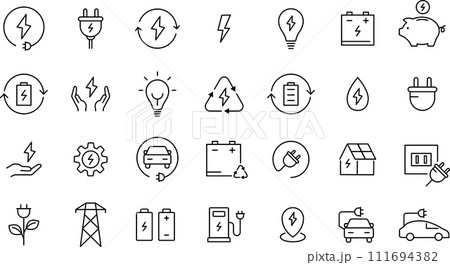 electric vehicle logo isometric flat line icons set. EV ECO clean energy technology icon. simple design vector