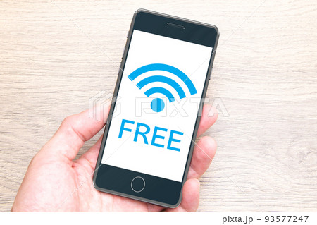 スマートフォンのクリックとWi-Fiのマーク clicking smartphone & wifi