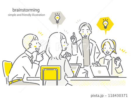 ビジネスミーティングで話し合いをする人々 シンプルでお洒落な線画イラスト