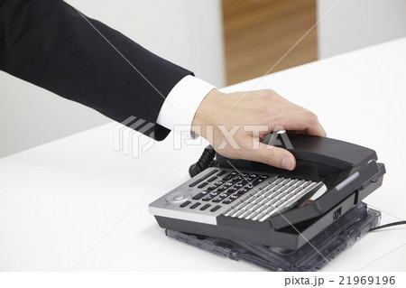 オフィス電話を取る男性の手