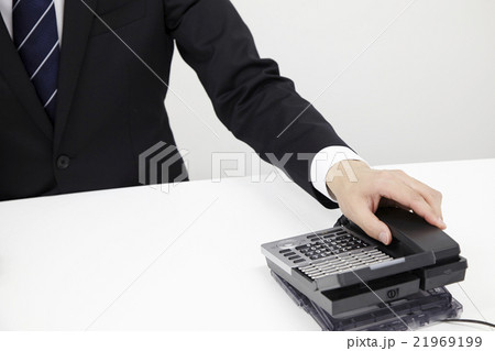 オフィスで受話器を取るビジネスマン手元