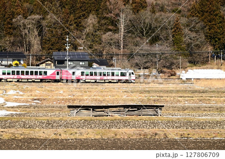 徳須恵川を渡る唐津線キハ125型(ロマンシング佐賀ラッピング車)