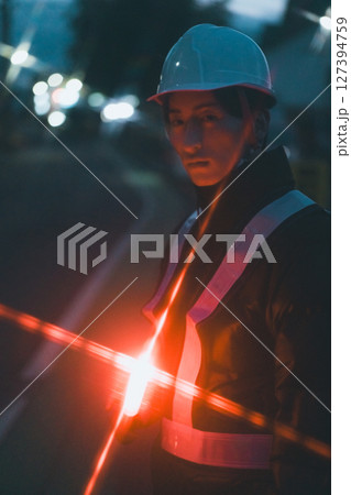 Red Alert: Nighttime Street's Warning Lamp in Action. Generative ai