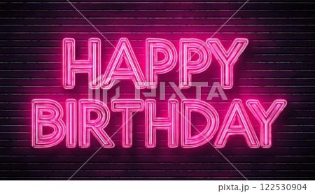 ハッピーバースデーのネオン文字 ピンク色に光る電飾