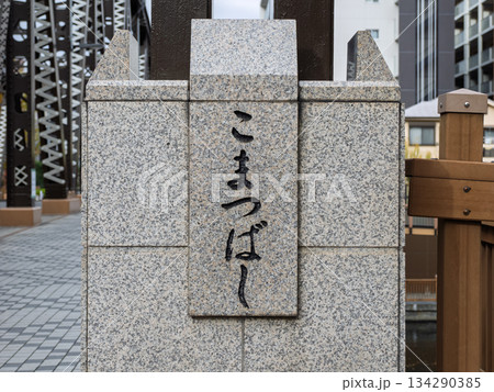 「隅田川」の河川名表示と清洲橋(江東区側より)
