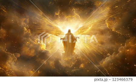 光に包まれる天界の神