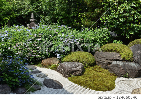 建仁寺塔頭 霊源院 庭園に咲く満開のガクアジサイ