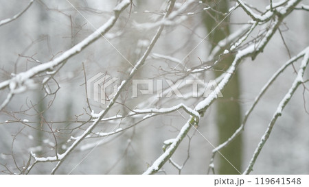 Frost and snow on branches.Winter seasonal nature.