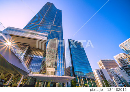 日本の東京都市景観 本日開業の虎ノ門ヒルズステーションタワー(虎ノ門ヒルズ駅)や虎ノ門駅などを望む