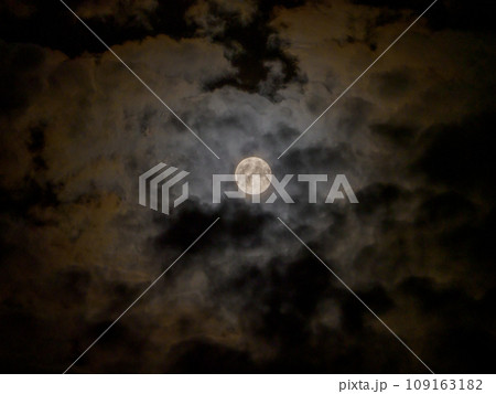 雲に霞む満月