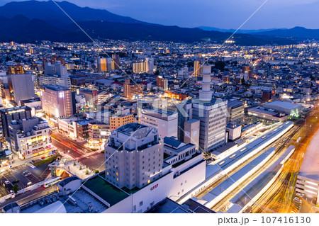 山形駅西口駅前広場から見る霞城セントラルの夜景 山形県山形市