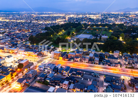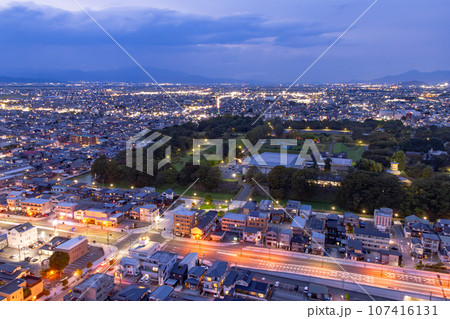 山形山形市の霞城セントラル展望ロビーからの山形市の都市夜景