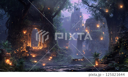 神秘的な霧に包まれた幻想的な風景のアート背景
