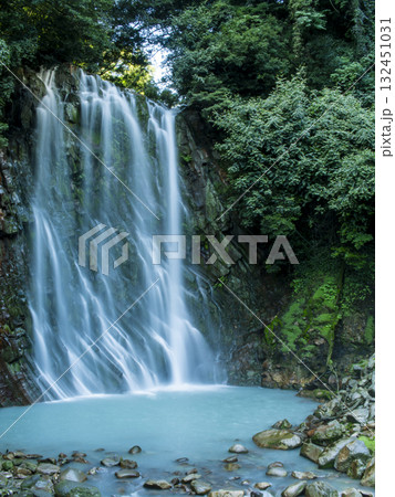 秋の丸尾の滝とエメラルドグリーンの滝壺