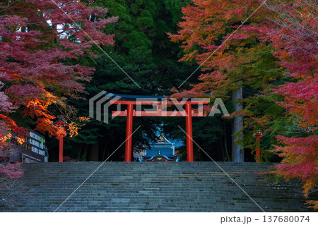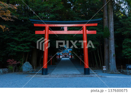 秋の鹿児島県霧島市 紅葉の霧島神宮 一の鳥居