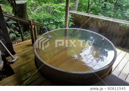 露天風呂 温泉イメージ 檜風呂 温泉情緒 源泉掛け流し イメージ素材