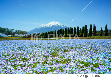 (山梨県)ネモフィラ咲く花の都公園から、富士山