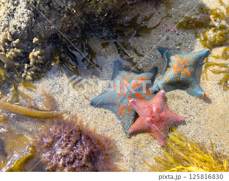 イトマキヒトデ 青色・ピンク色 潮溜まり