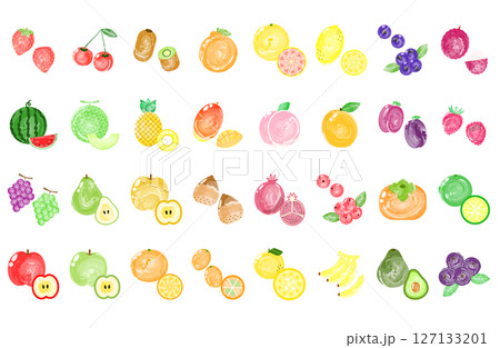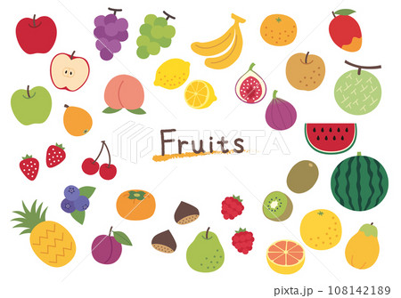 たくさんの種類の果物のイラストセット
