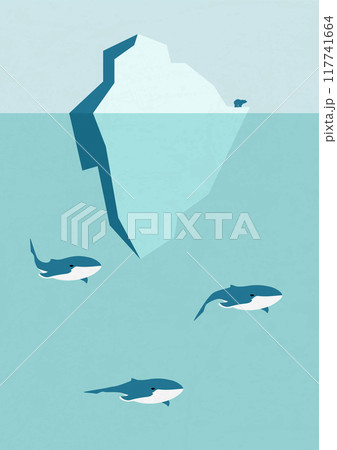 Antarctica winter landscape with iceberg illustration. Frozen sea and whales, minimalist wall decor