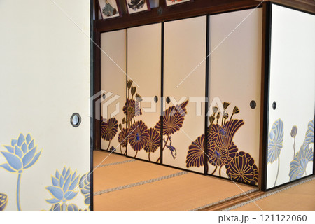 青蓮院 華頂殿 襖絵の蓮(京都市東山区)