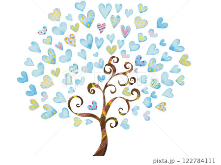 水彩風 水色のハートの樹2