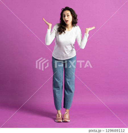 Stunned Indian woman with hands on cheeks and eyes wide open, expressing dramatic disbelief. Beautiful female model stands against brown background, looking at camera in shock and amazement.