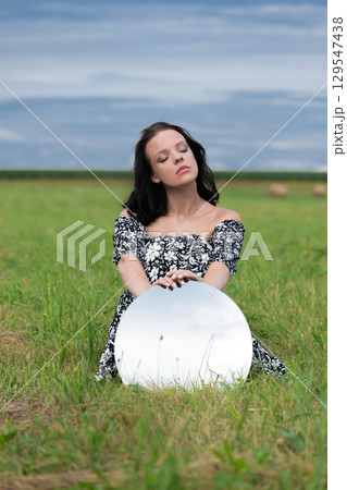 Young woman doing yoga outdoors,meditating in nature. Healthy lifestyle, strength, calm, mindfulness