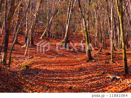落ち葉の敷き詰められた森の小道