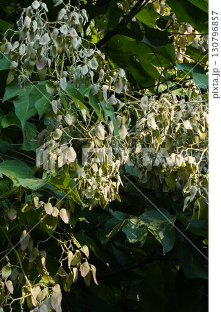 大きな青桐(アオギリ)の葉と種子