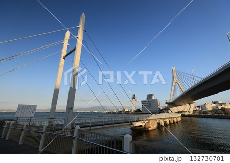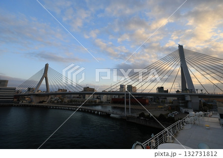 ライトアップの青森ベイブリッジ 夕景 夜景