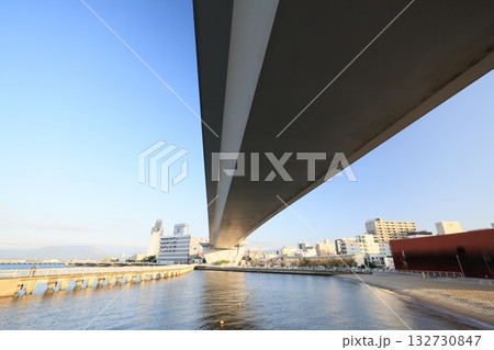 【青森県青森市】早朝の青森ベイエリア、快晴の風景