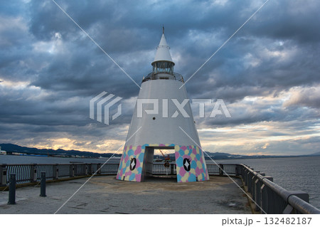 夕暮れの青森港北防波堤西灯台 青森
