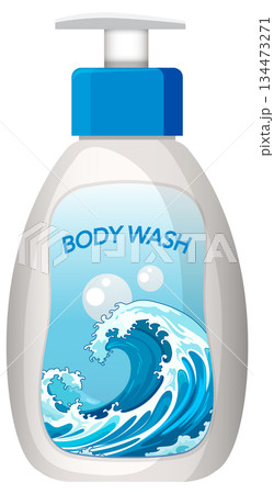 Body Wash Bottle with Ocean Wave Label Illustration