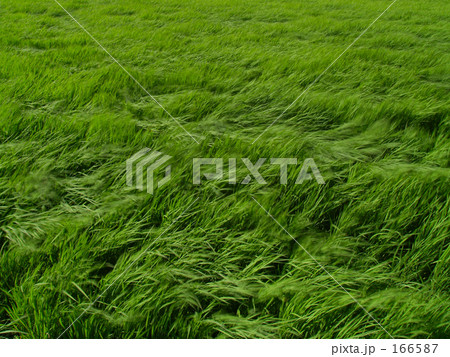 強風吹きすさぶ青田