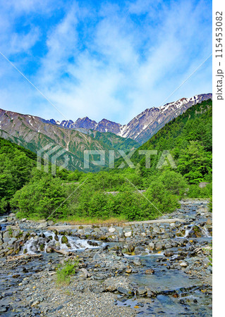 松川白馬大橋から北アルプス白馬三山の初夏の眺望