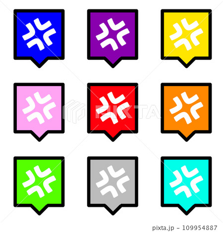 怒りマーク1と2色でカラフルな四角い吹き出し 9個セット