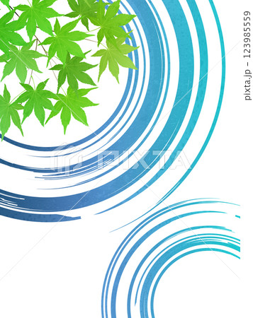 涼しげな水面の波紋と青紅葉 和風伝統模様背景イラスト