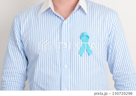 Man with blue Ribbon for concept of blue November, November Prostate Cancer Awareness month, World Diabetes day , Men Health month, International men, Father day. Healthcare and world cancer day
